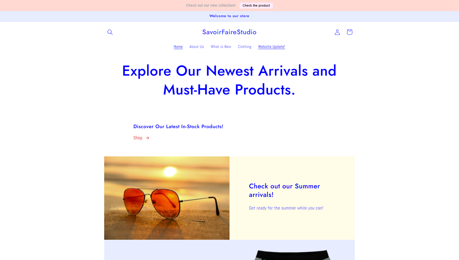 Savoir Faire Studio is a fully customized Shopify store I designed and built from scratch. The goal was to create a clean, modern shopping experience while learning storefront customization, product structuring, and theme editing. I customized layouts, navigation, product sections, and integrated branding elements to create a polished and responsive e-commerce experience.